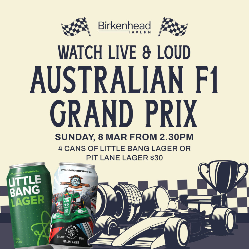 Plus, enjoy our F1 drinks special, with four cans of either Little Bang Lager or Pit Lane Lager for just $30!