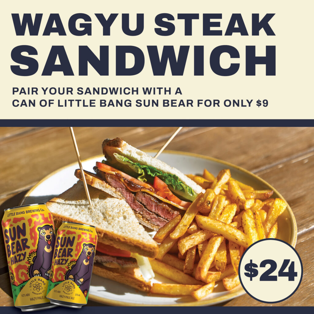This April, enjoy our mouth-watering Wagyu steak sandwich special for just $24! Chips and good vibes included.